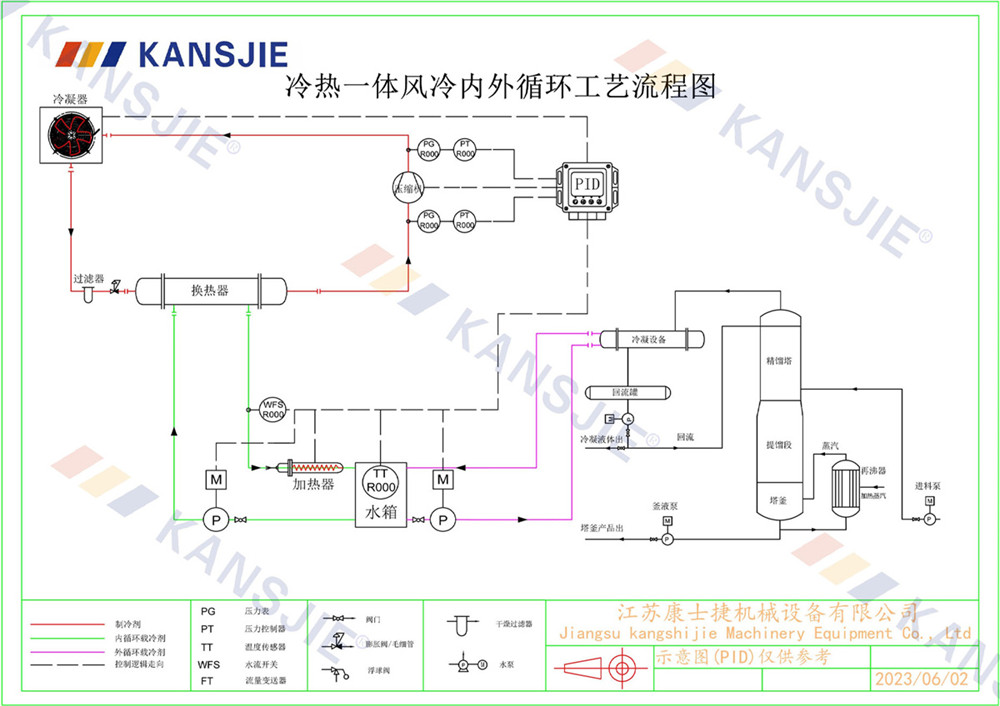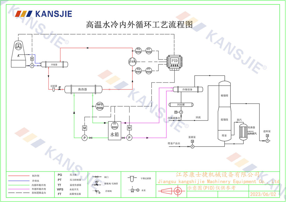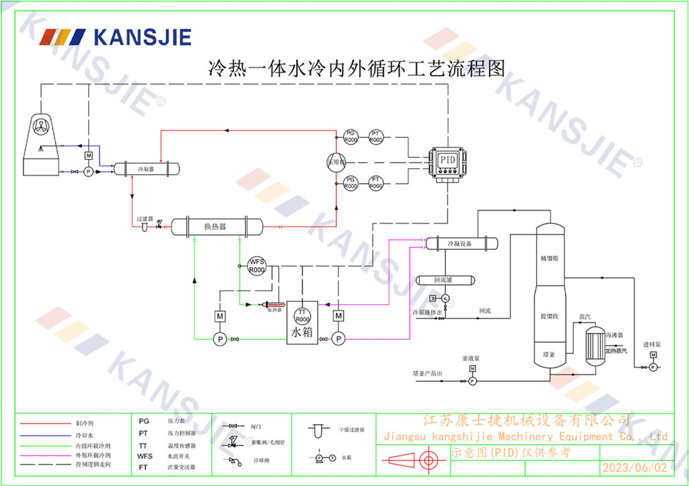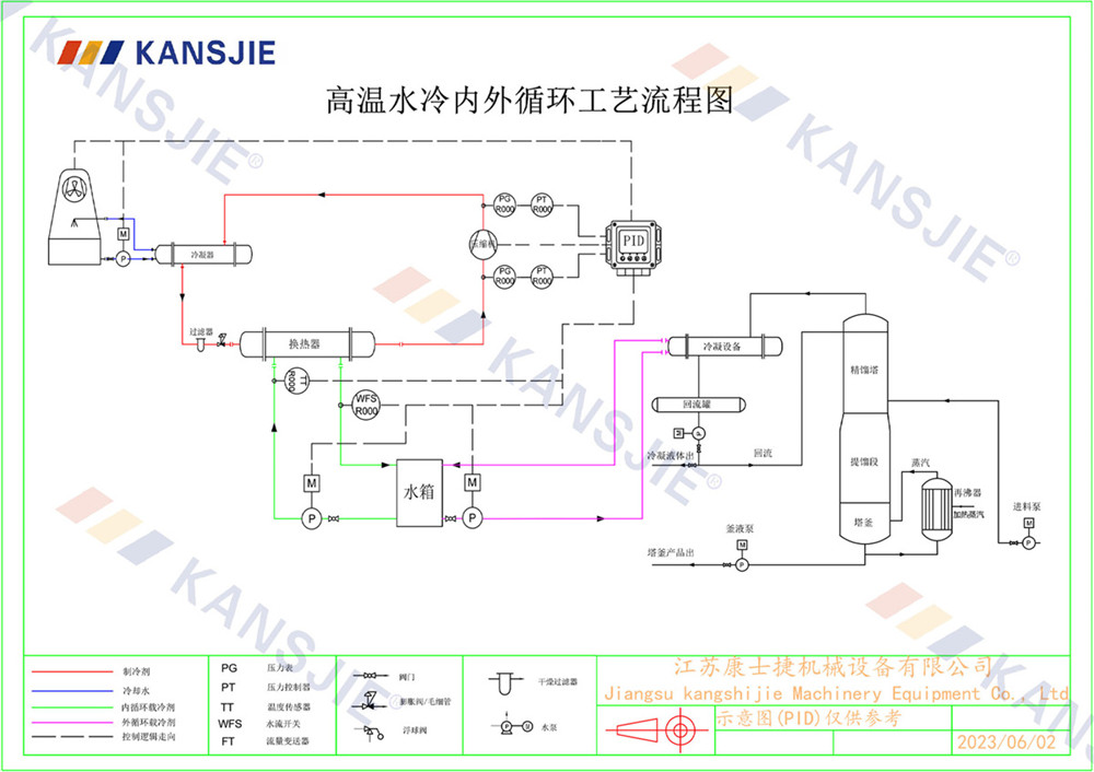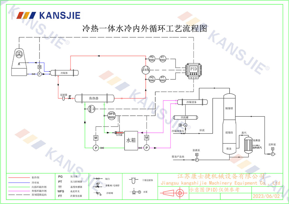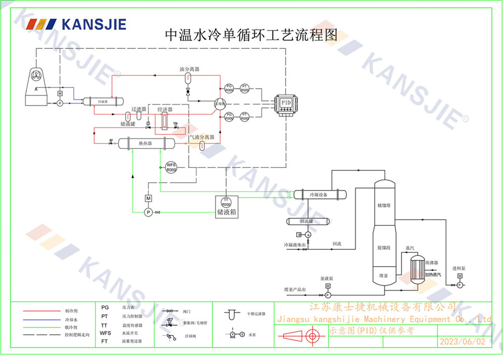 隨著蒸汽的升騰,精餾塔的溫度會逐漸升高,若過高則可能會影響分離效果。通過冷水機組來降低精餾塔的溫度,有利于維持精餾塔內的穩定狀態,防止產生泡沫或者結垢等現象,從而保證分離效果的穩定。