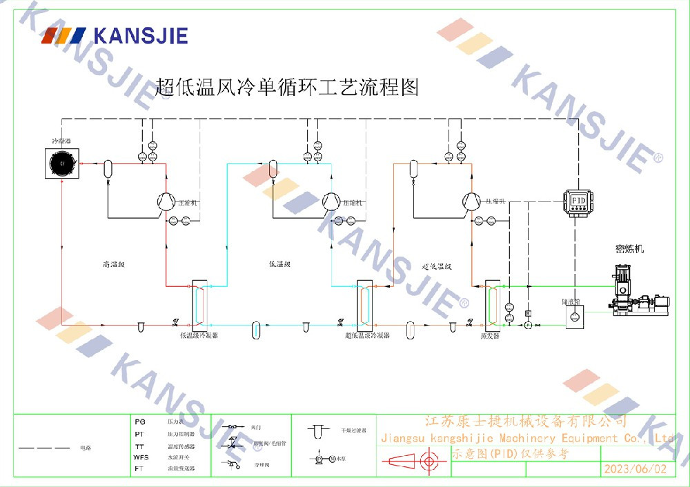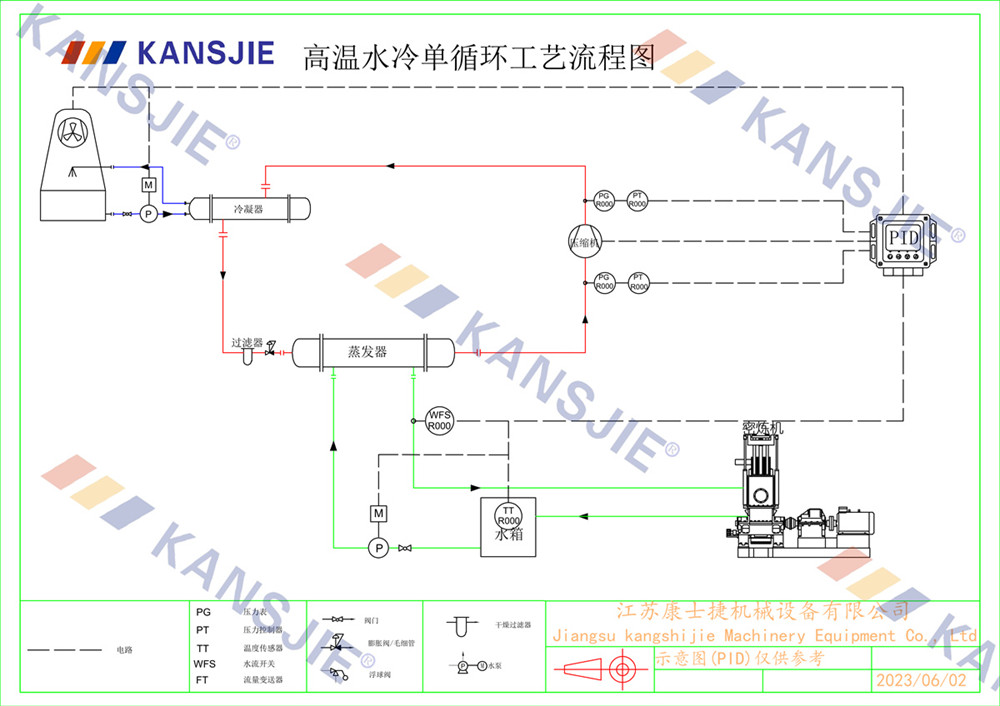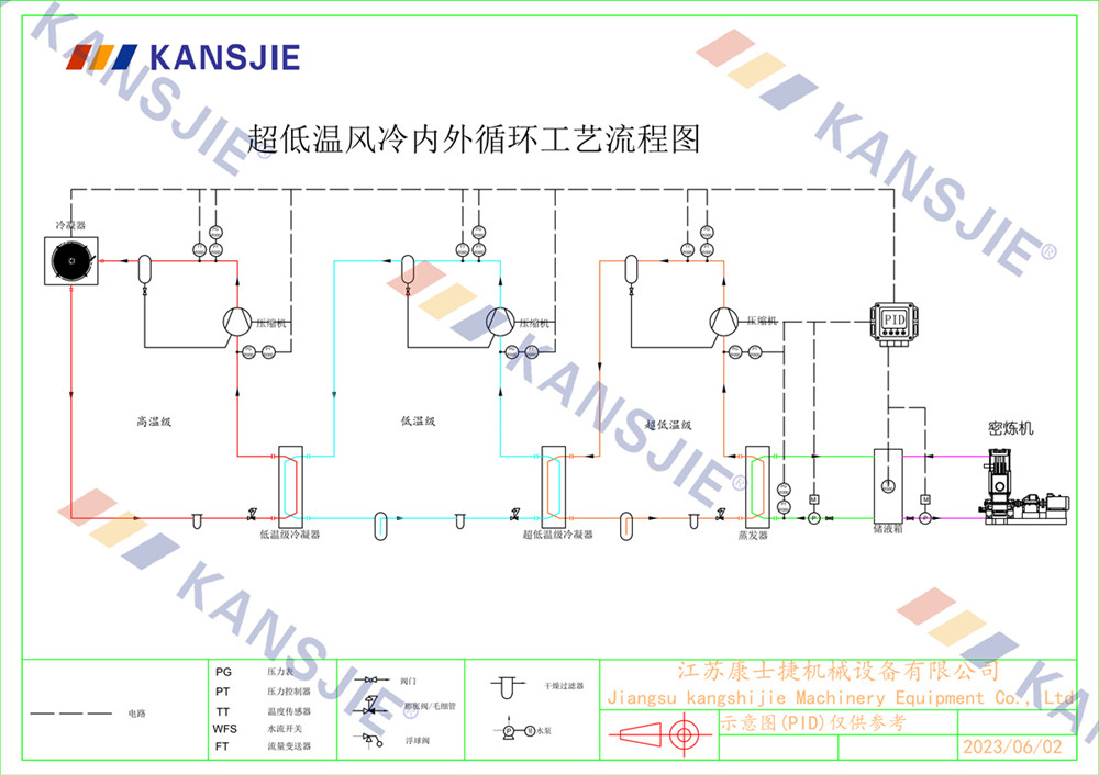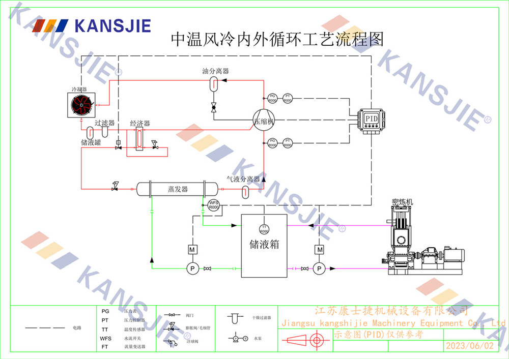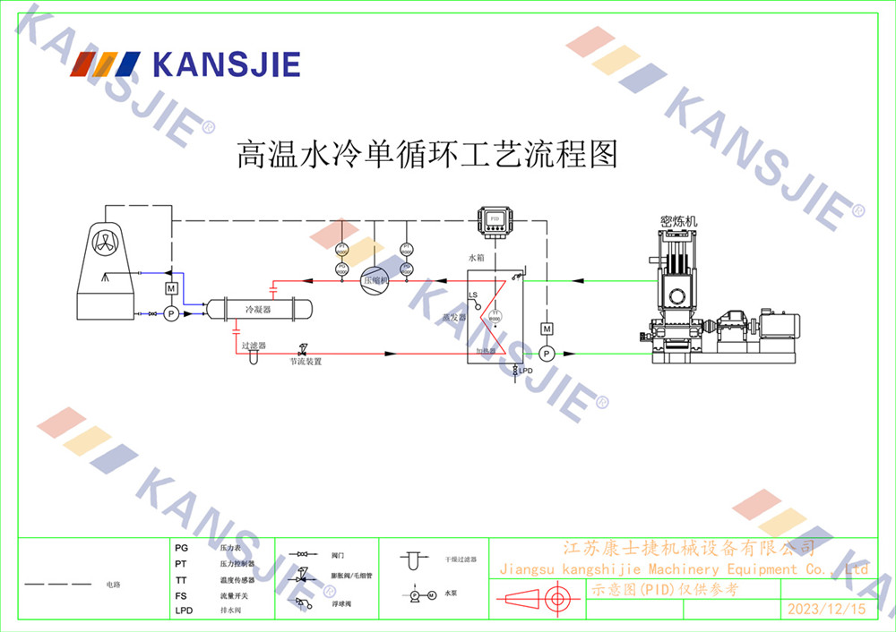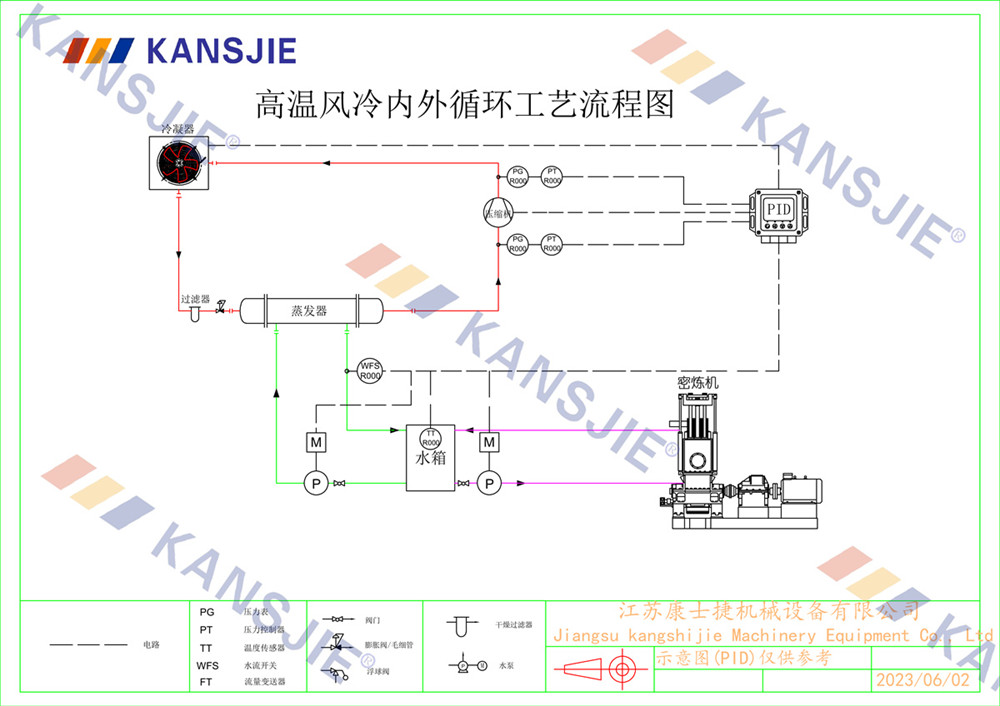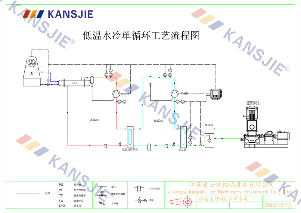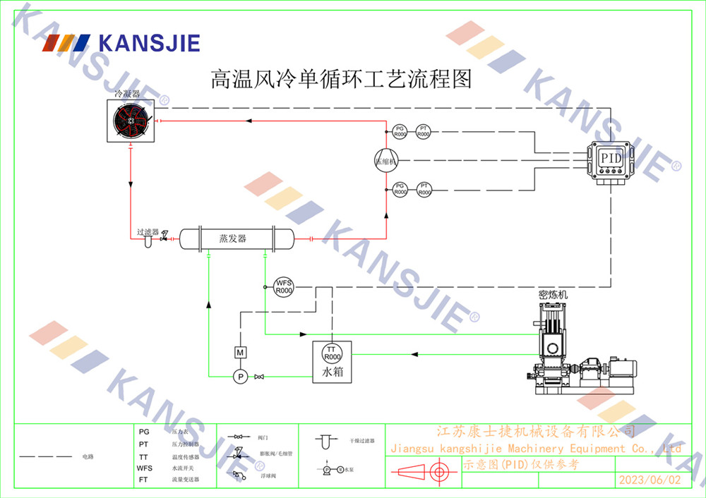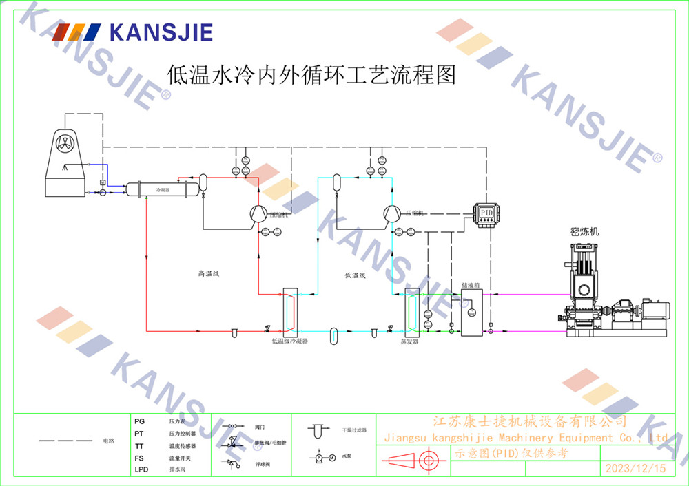 冷水機通過調節冷卻凍水的流量和溫度,將密煉機的溫度穩定地控制在工藝要求的范圍內。當密煉機內部溫度過高時,冷水機提供低溫的冷凍水,吸收多余熱量,降低密煉機溫度,當溫度過低時冷水機適當調節冷凍水流量或溫度,保持穩定的溫度。