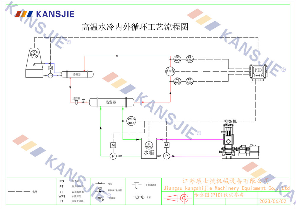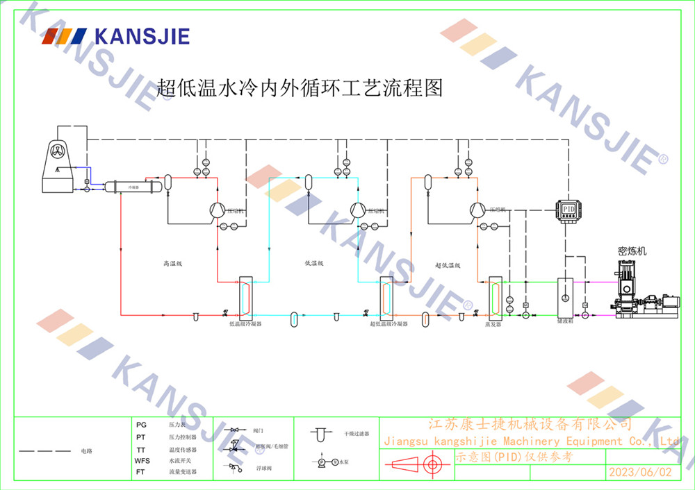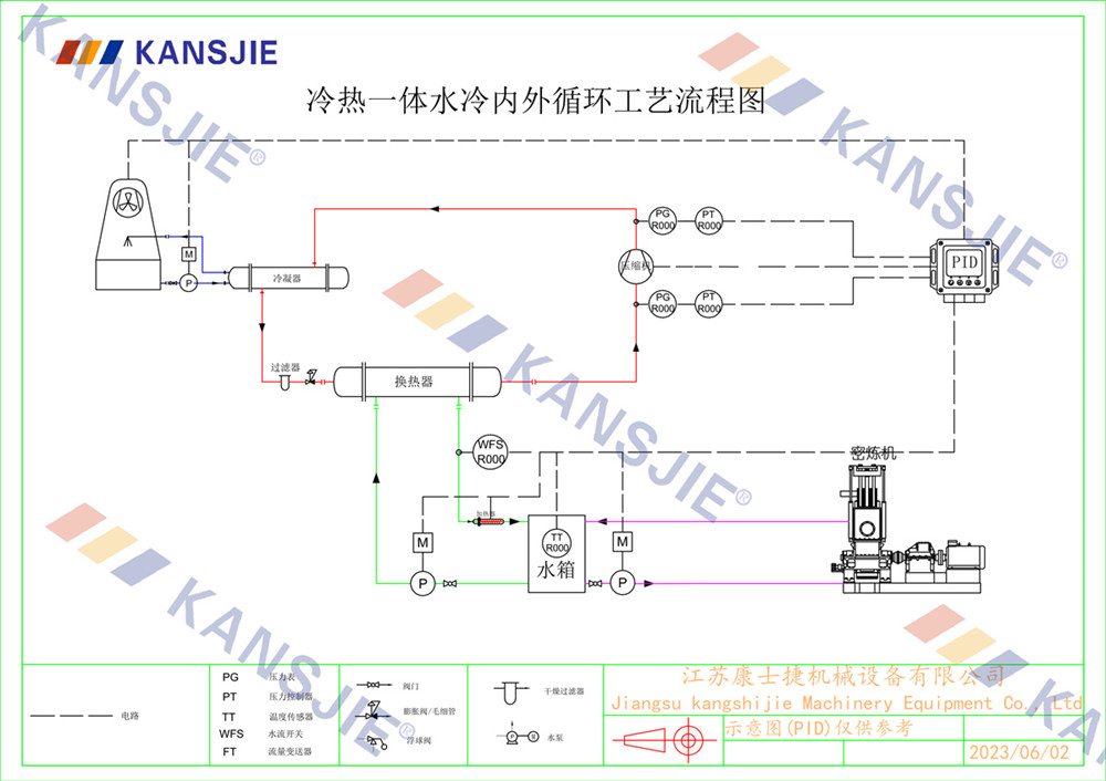 在反應過程中,物料會產生大量熱量,使得密煉機內部溫度升高,冷水機通過吸收密煉機內部的熱量,保持客煉機內部的熱量平衡,確保物料在恒定的溫度下進行混合和塑化。